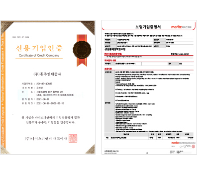 각종 환경 인증 평가, 기업신용인증평가, 생산물배상책임보험, etc